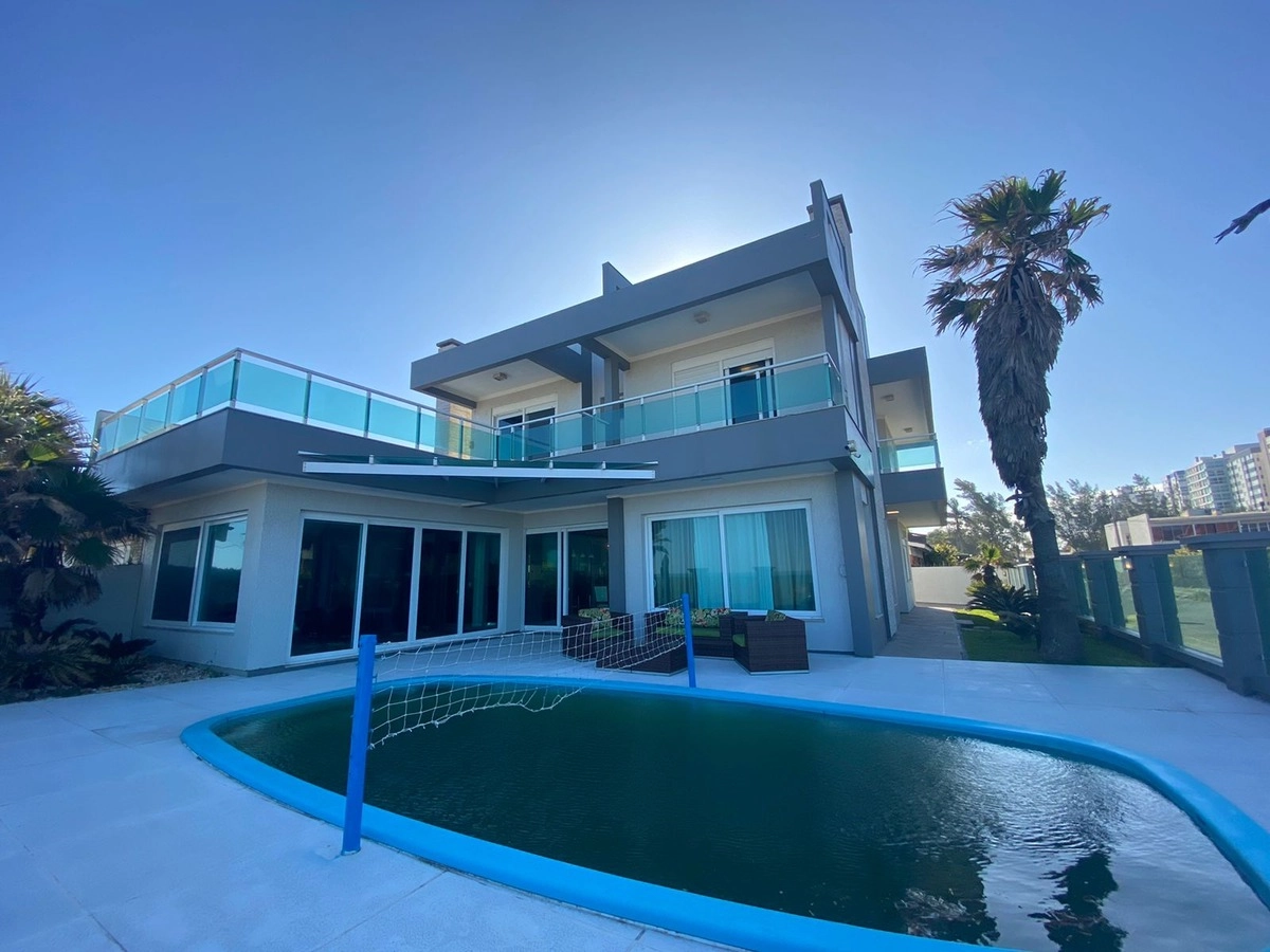 Com localização privilegiada na Beira Mar de Atlântida, junto a divisa de Capão da Canoa! Imóvel finamente mobiliado e decorado composto por 5 amplas suítes, sendo 4 delas no andar superior e com sacada com vista panorâmica para o mar. A suite principal possui terraço de frente para o mar, closet e banheira de hidromassagem. Living amplo em 3 ambientes, sala de estar com lareira, sala de jantar integrada a cozinha gourmet, lavabo, dependência de empregada. Patio com piscina na frente do mar e vaga de garagem fechada para 2 carros e vaga aberta para mais 2 carros. E de brinde melhor e mais procura posição solar da praia Leste/Norte. Entre em contato com um de nossos corretores para solicitar mais informações ou para agendar uma visita! Encontre mais casas a venda como esta na Euro Imóveis em Capão da Canoa.