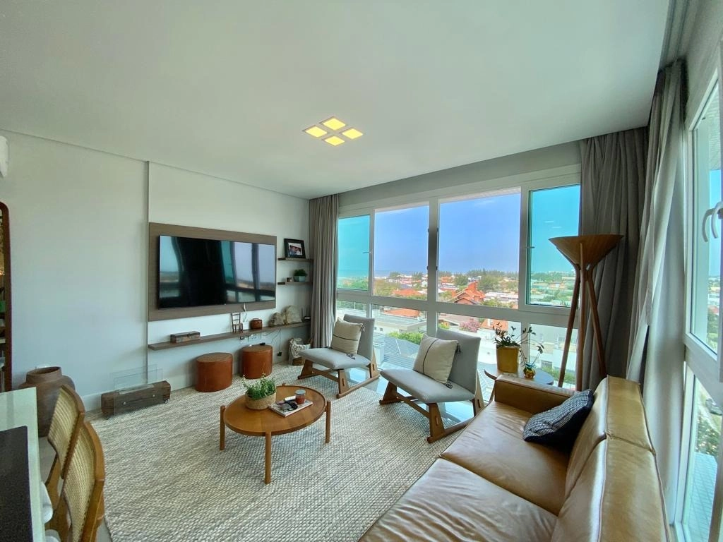 Esse é imóvel ideal para você que procura luxo, conforto, qualidade de vida e uma linda vista!! Apartamento excelente composto por 3 dormitórios, sendo 1 suíte + banho social e lavabo, living divido em 2 ambientes, estar e jantar, todos os cômodos finamente mobiliados e decorado, cozinha em estilo americana e área de serviço separada, sacada ampla integrada de frente com vista para o Mar e para a Serra!! Localizado em uma região privilegiada no bairro Navegantes, junto à divisa de Capão da Canoa e Atlântida e apenas à 3 quadras do mar. Edifício novo e de altíssimo padrão construtivo, 100% revestido em plaquetas, piso em porcelanato, água quente e gás central, portão e porteiro eletrônico, hall de entrada decorado, zeladoria permanente, 2 elevadores e infraestrutura completa!!!