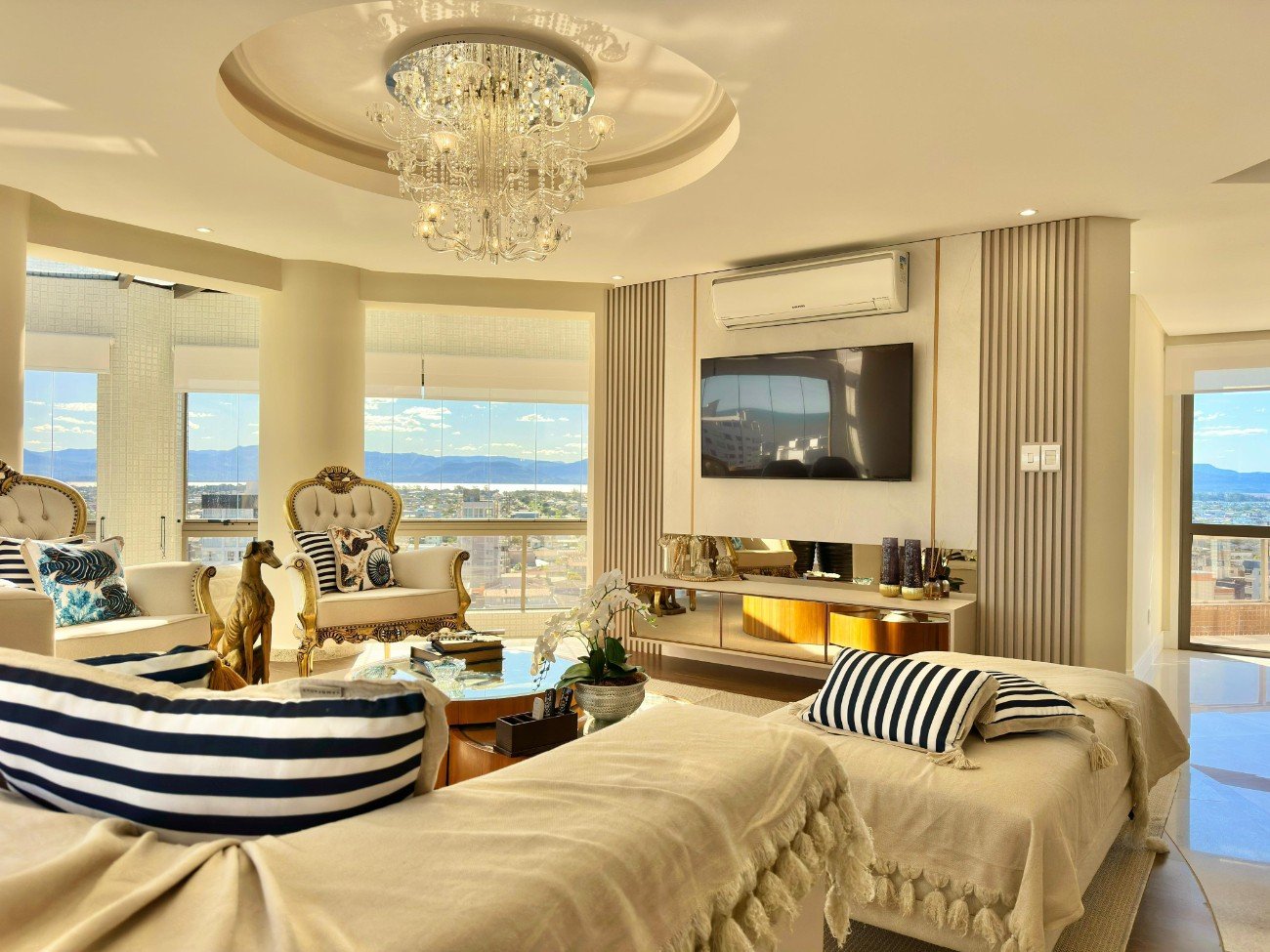 partamento exclusivo e de altíssimo padrão, com 459,61 m² de área privativa, totalmente mobiliado, decorado, repaginado, equipado e climatizado, pensado para quem busca sofisticação, conforto e uma vista verdadeiramente privilegiada. O imóvel dispõe de 4 suítes, sendo uma suíte master com banheira e amplo sacadão com vista permanente para o mar. Conta ainda com lavabo e cozinha ampla, funcional e elegante. O living para 5 ambientes impressiona pelo espaço e integração, com ampla sacada e vista 360°, contemplando a cidade, a lagoa e o mar, proporcionando uma experiência única de morar bem. A unidade recebe sol em todas as posições solares (leste, norte, oeste e sul), garantindo iluminação e ventilação naturais durante todo o dia. Como diferencial exclusivo, o apartamento possui salão de festas privativo, equipado com churrasqueira, adega e banheiro auxiliar, ideal para receber com conforto e privacidade. Dispõe de 3 boxes de garagem individuais e oferece vista eterna para o mar, tornando este imóvel uma verdadeira joia rara, perfeita para quem busca exclusividade, amplitude e alto padrão em uma localização privilegiada.