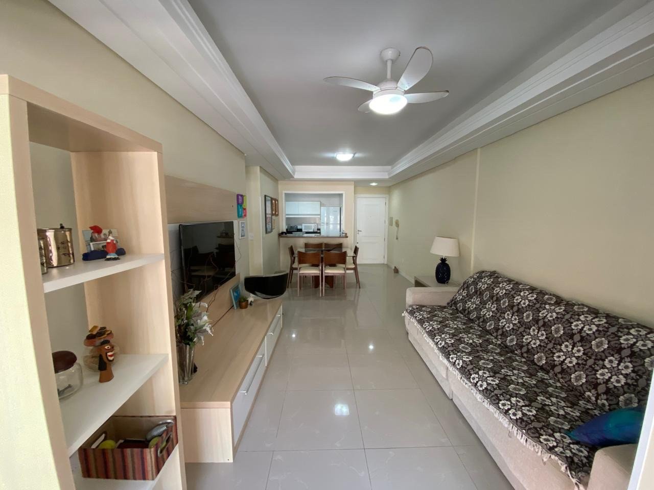02 dormitórios (01 suíte) Apartamento de frente com vista para o mar ?Living 02 ambientes ?Mobiliado ?Decorado ?Churrasqueira ?Split em todos ambientes ?75 M² área privativa ?1 Box para carro Condomínio 450,00 Edifício 02 Elevadores Zelador Permanente Hall Decorado Salão de festas