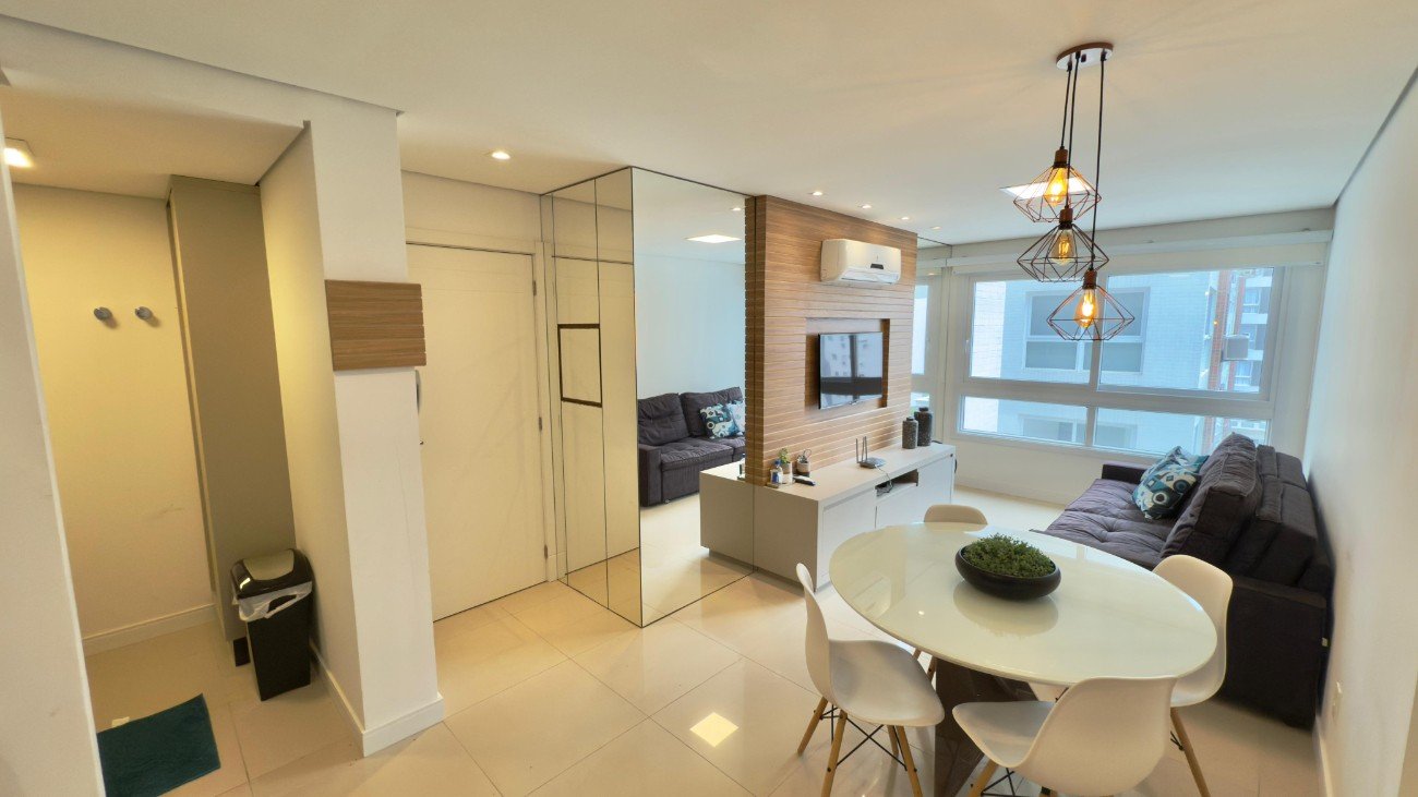 Apartamento de dois dormitórios, finamente mobiliado e decorado, com ambientes integrados, amplas janelas e excelente luminosidade natural. Possui living com vista panorâmica para a cidade, cozinha americana equipada, área de serviço separada e acabamentos modernos que proporcionam conforto e elegância. Localizado em região nobre de Capão da Canoa, próximo ao mar e com fácil acesso a comércios e serviços. Ideal para quem busca praticidade, estilo e qualidade de vida no litoral.