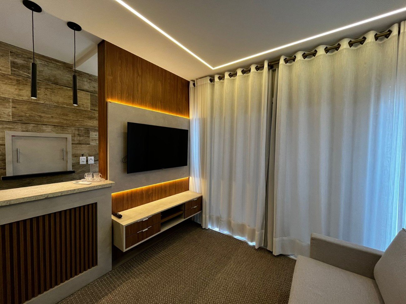 2 DORMITÓRIOS NOVO E DECORADO!! Composto por 2 dormitórios, sendo 1 suíte + banho social, cozinha em estilo americana e área de serviço integrada. Living finamente mobiliado e decorado dividido em dois ambientes, estar/jantar, sacada integrada de frente. Localizado no bairro Zona Nova junto à Praça Flávio Boianowisk, apenas à 3 quadras do mar. Edifício de alto padrão construtivo, 100% revestido em plaquetas, esquadrias em PVC, piso em porcelanato, água quente e gás central, hidrômetro individual, infraestrutura completa, piscina, salão de festas, academia, etc. elevador, interfone, hall de entrada decorado e zeladoria permanente.