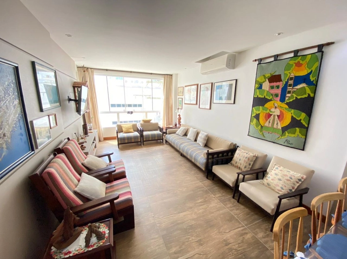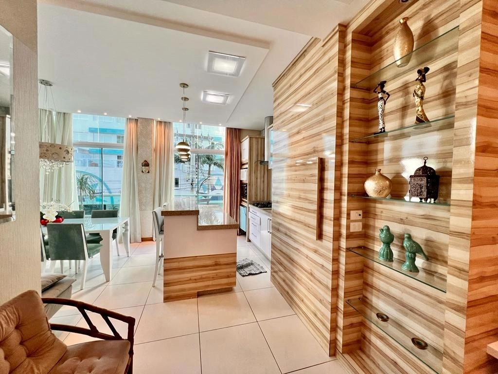 Apartamento de 3 dormitórios, com living integrado em conceito aberto, composto por sala de estar com sacada envidraçada e vista privilegiada, jantar espaçoso e cozinha planejada, além de móveis sob medida, climatização, iluminação sofisticada e acabamentos de alto padrão, proporcionando um ambiente moderno, aconchegante e ideal para quem busca conforto, praticidade e sofisticação no litoral.