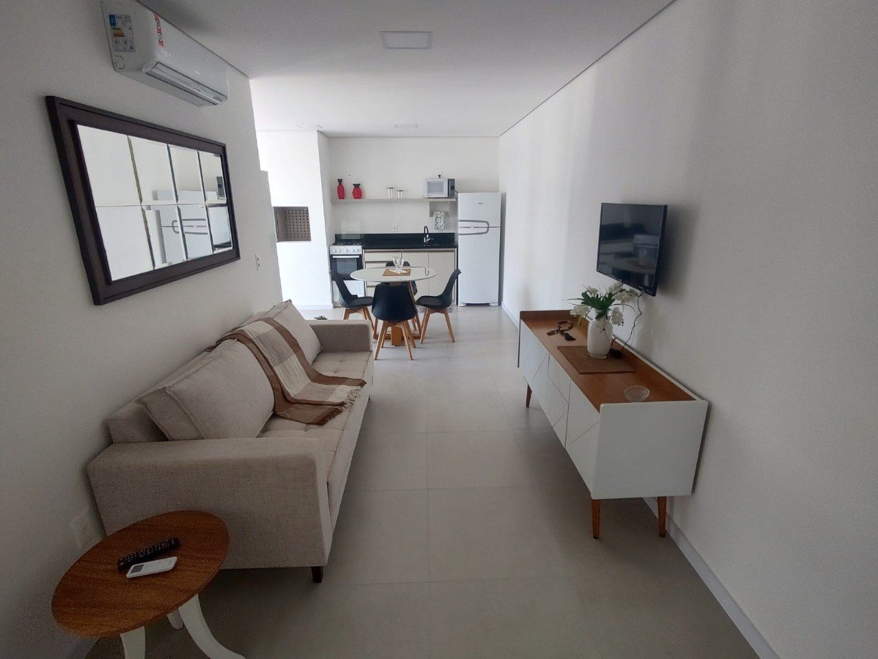 Este charmoso apartamento à venda em Capão da Canoa encanta pela sua decoração elegante e funcionalidade ideal para o dia a dia. A sala de estar integra-se perfeitamente à cozinha americana, criando um ambiente acolhedor e moderno, com móveis planejados, painel de TV sob medida e iluminação embutida que valoriza cada detalhe. Com ar-condicionado, acabamento refinado e ótima localização, este imóvel é ideal para quem busca praticidade, conforto e um espaço pronto para morar ou investir no litoral.