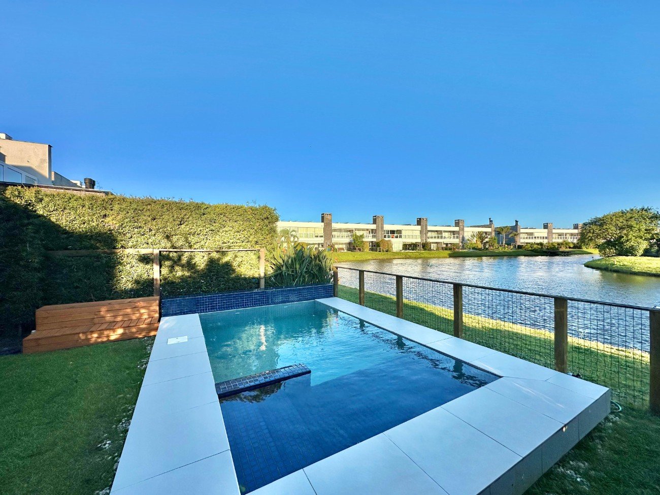 4 dormitórios sendo 02 suíte Banho social 240,00 M² área construída Tamanho do terreno 340 M2º Mobiliada Decorada Living amplo Área de serviço Pátio Sobrado com piscina Espaço gourmet com churrasqueira Beira Lago 02 box coberto para carro