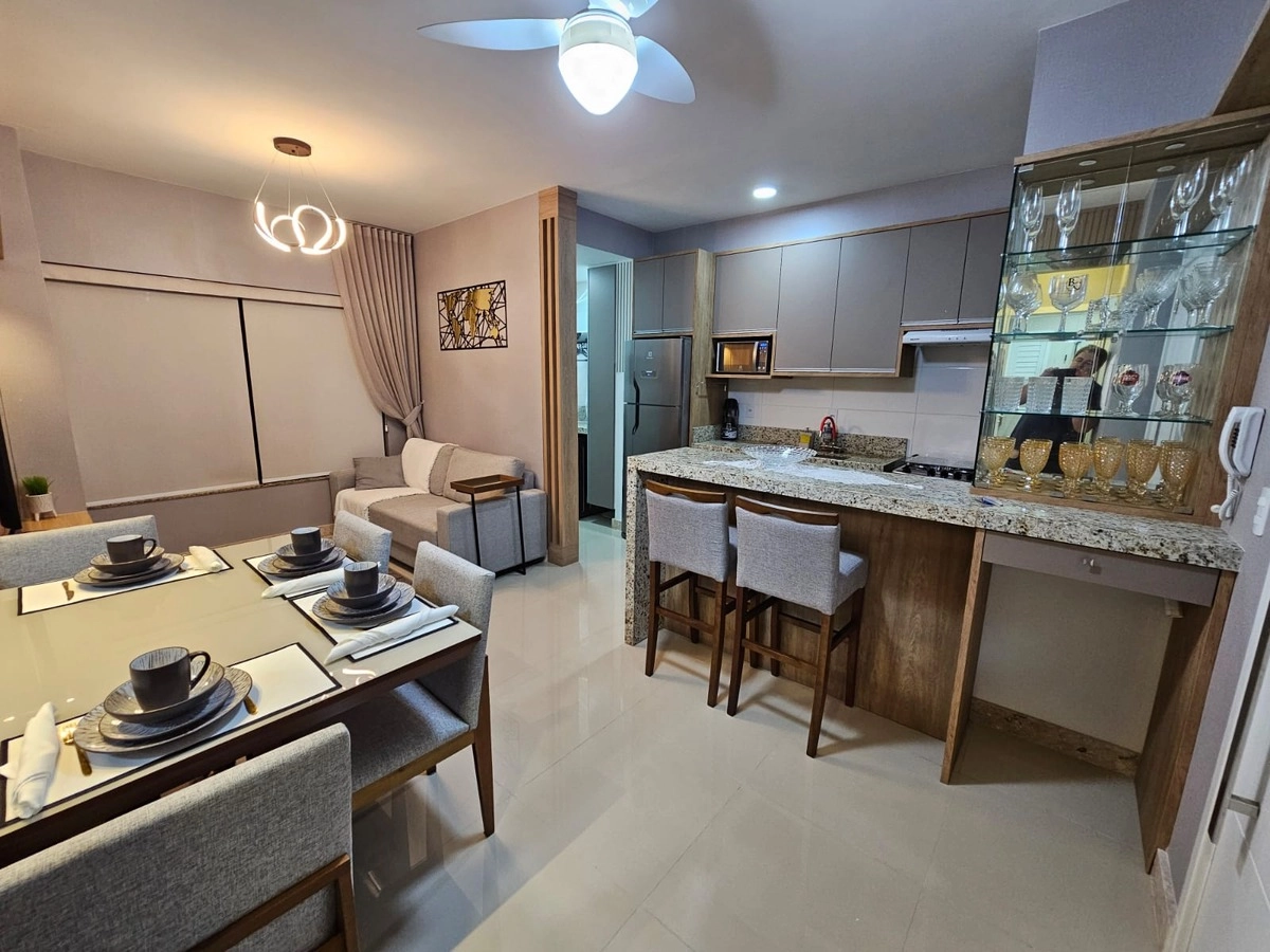 Apartamento novo, são 2 dormitórios mobiliado e decorado composto 1 suíte, banho social, cozinha americana, área de serviço, living de estar e jantar , com todos eletros, 1 box para carro, alto padrão de acabamento, 2 elevadores, hall de entrada decorado, localizado privilegiada próximo de todos os recursos da praia de frente para linda praça, infraestrutura completa!