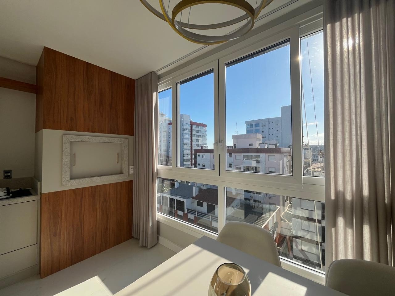 – 03 Dormitórios (1 suite) – ?Banho Social – ?Lavabo – ?Living de esquina integrado estar e jantar com cortinas automatizadas – ?Totalmente Mobiliado e decorado – ?Churrasqueira ?Cozinha americana e área de serviço separada ?Vista liberada ?Sol o dia todo ?Esquadrias em PVC com persianas automatizadas ?Apto: 124,45m² área total 95,10m² área privativa ?01 Box Edifício 01 Elevador ?Hall decorado
