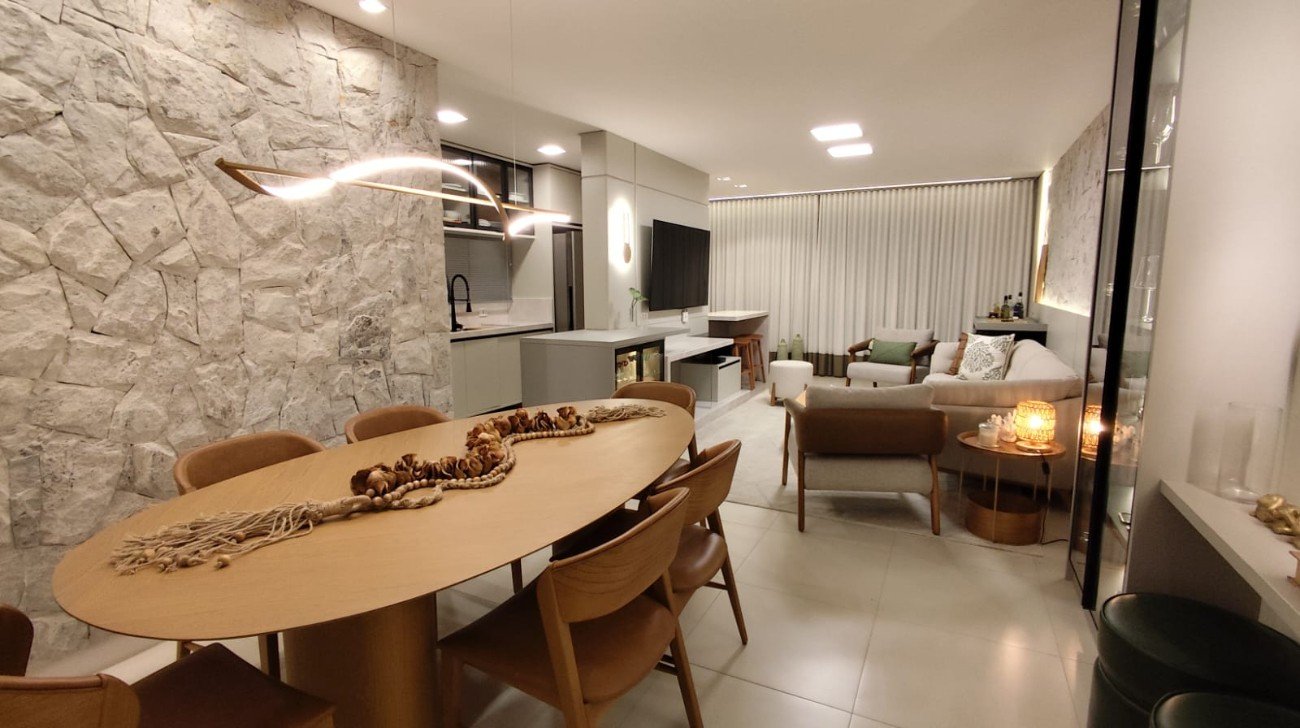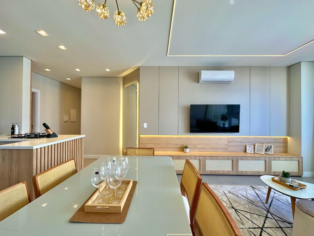 Este apartamento de três dormitórios é uma residência espaçosa e luxuosa, perfeita para quem procura conforto e uma vista deslumbrante. Com uma área total de 140 metros quadrados privativos, este espaço oferece um ambiente generoso para morar e entreter. Ao entrar no apartamento, você é recebido por uma sala de estar elegante e bem iluminada, ideal para relaxar e receber visitas. Grandes janelas proporcionam uma vista panorâmica do mar e da serra, criando uma atmosfera serena e inspiradora em todo o ambiente. Living com três ambientes Os três dormitórios são confortáveis e bem projetados, com espaço para acomodar toda a família. O quarto principal é uma suíte espaçosa, completa com um banheiro privativo elegante, proporcionando um refúgio tranquilo e privado para os moradores. Uma característica excepcional deste apartamento é o sacadão com churrasqueira, onde você pode desfrutar de refeições ao ar livre enquanto aprecia a vista deslumbrante. Seja durante o dia, com o azul do mar se estendendo até o horizonte, ou à noite, com as luzes da cidade cintilando ao longe, este espaço é perfeito para momentos de lazer e relaxamento.