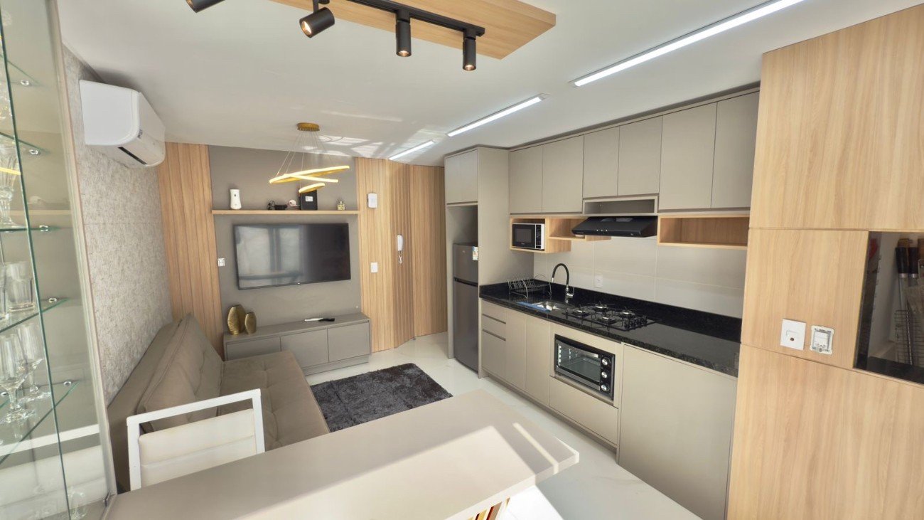 Apartamento moderno e mobiliado no centro de Capão da Canoa, ideal para quem busca praticidade e conforto. Conta com uma sala de estar integrada à cozinha em estilo americano, com móveis planejados de alto padrão, bancada em granito e acabamento contemporâneo. O ambiente é bem distribuído, aproveitando cada espaço com elegância e funcionalidade. Uma excelente opção para morar ou investir, próximo a comércios, serviços e a poucos minutos da praia.
