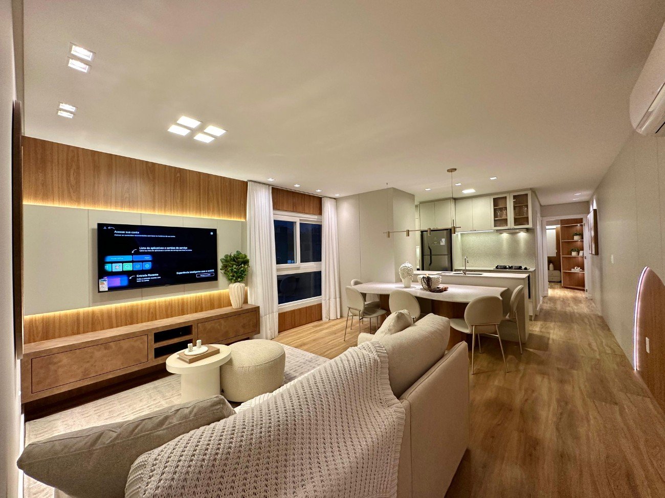 2 Dormitórios ( 01 Suíte) Banho Social Mobiliado Decorado 113,11 M² área total 01 box Elevador Hall decorado Infra com Rooftop 3 Spa com vista para o mar Espaço fitness Salão de festas Zelador Permanente