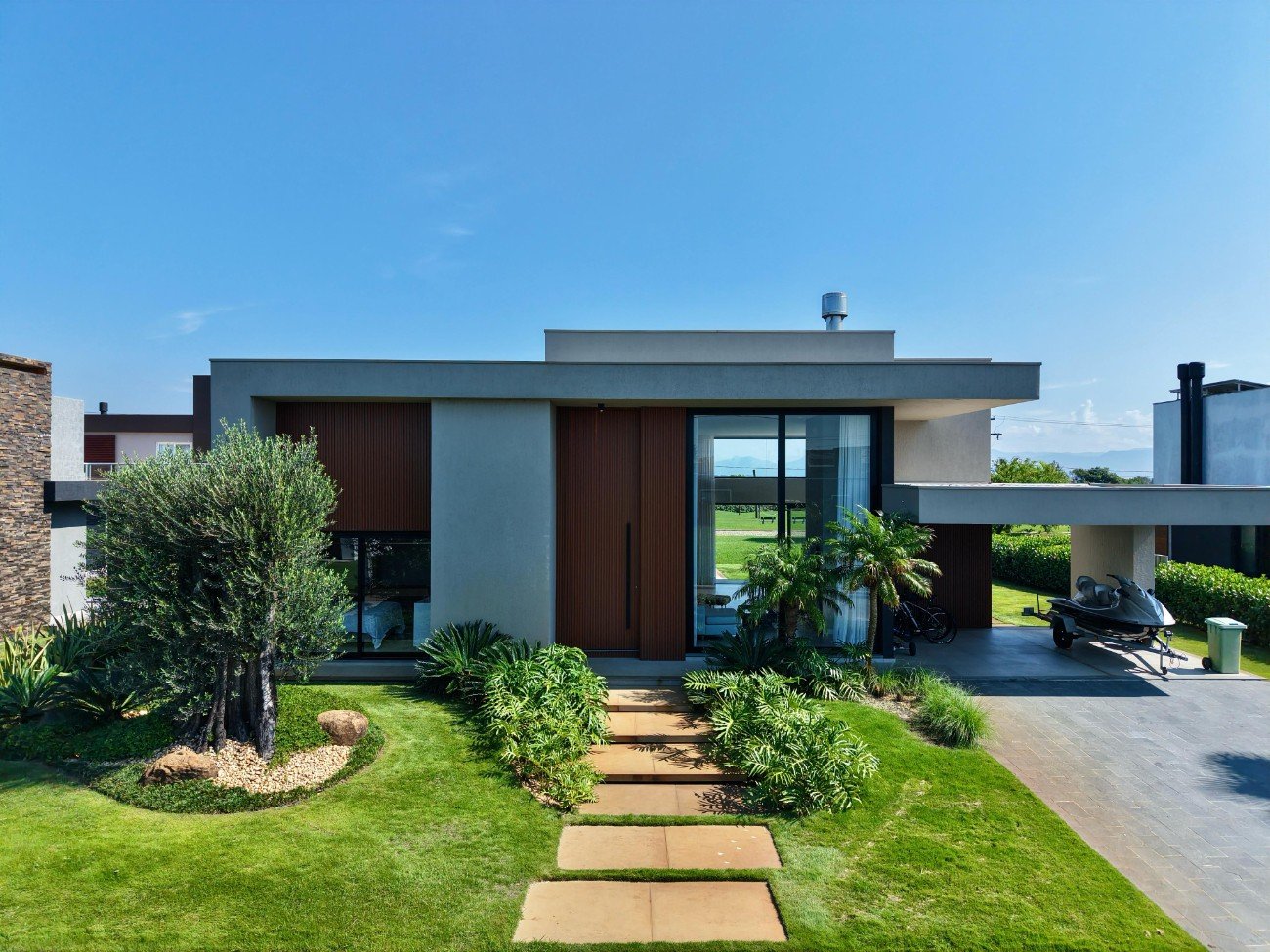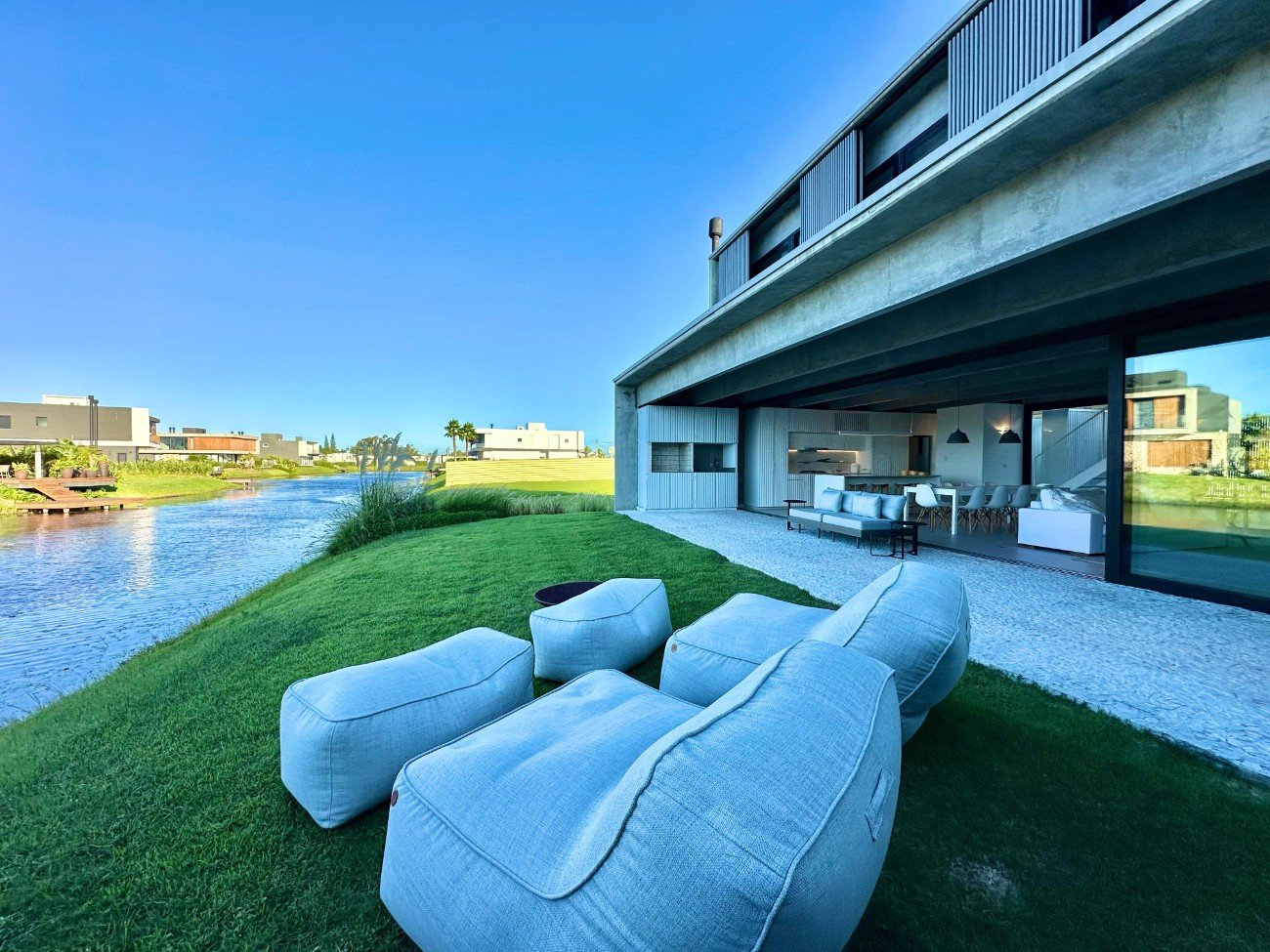 Casa com 270 M² Lote com 600 M² Posição solar Oeste Garagem fechada com espaço para 2 automóveis lado a lado 04 suítes independentes + closet e banheiro duplo Lavabo Lavanderia com fechadura eletrônica com biometria e abertura por App Ambientes integrados com pé direito duplo Churrasqueira Lareira Mobiliada e decorada Ar-condicionado em todos os ambientes Aquecimento de piso e calefação com gás a granel Fotovoltaica Robô cortador de grama Irrigação automática Condomínio Náutico 02 Clubes Acesso à lagoa Infra estrutura completa Segurança 24h