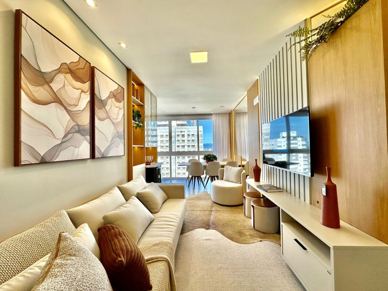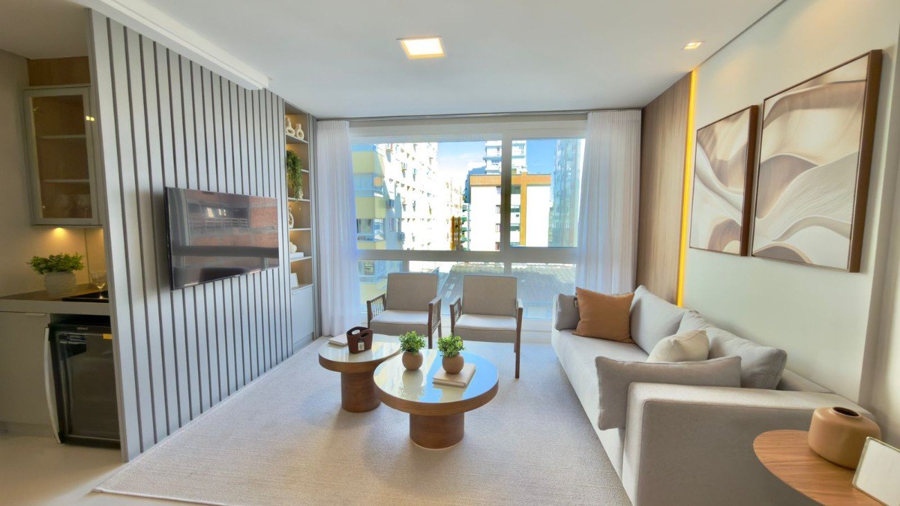 Belíssimo apartamento composto por 03 dormitórios sendo 01 suíte, banho social, sala de estar e jantar integradas, cozinha estilo americana, sacada com churrasqueira, completamente mobiliado e decorado, pronto para uso imediato, imóvel pensado para clientes que buscam conforto e sofisticação, pensado em cada detalhe para atender as suas expectativas. Edifício conta com salão de festas no rooftop, localizado a duas quadras do mar, junto a praça Flávio boianovski. Agende sua visita e saiba mais informações.